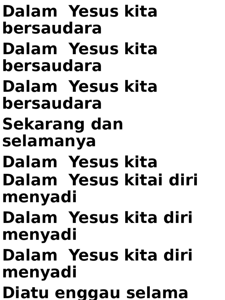 Bersuka bersuka dalam Tuhan. Iklan Tengah Artikel 1. Dalam Yesus kita bersaudara Dalam Yesus kita bersaudara Dalam Yesus kita bersaudara Sekarang dan selamanya Dalam Yesus kita bersaudara.